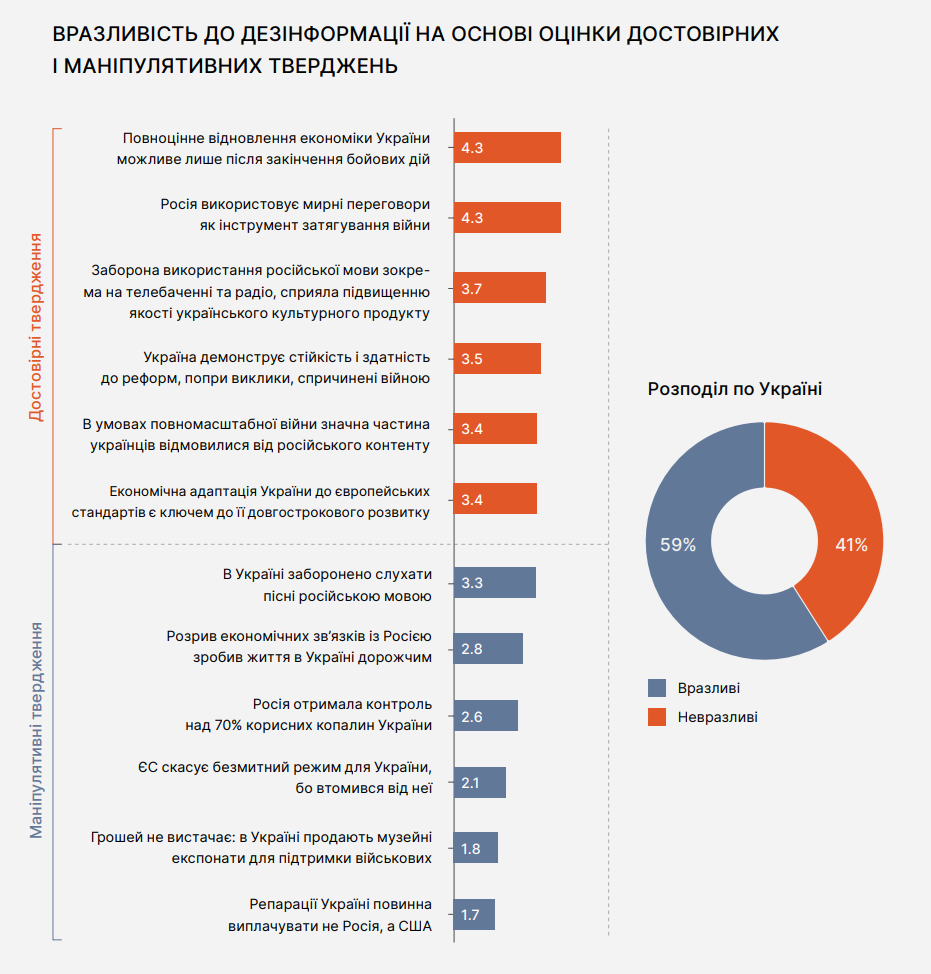 59% українців вразливі до дезінформації, як показали результати інформаційного тесту (див. методологію).